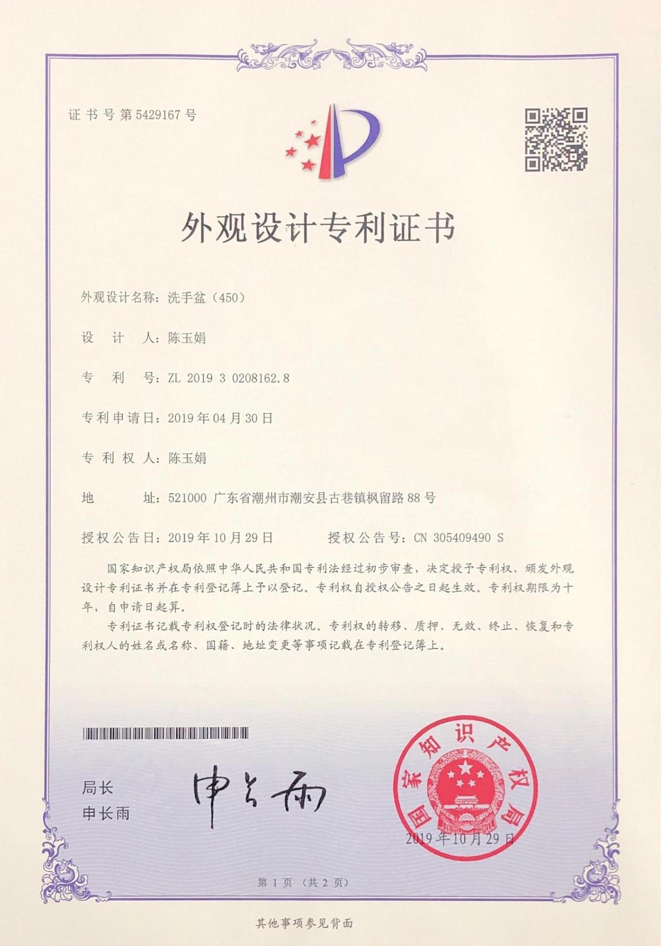 of hand basins and kitchen ceramic sinks. In 2016, we were awarded the title of "China